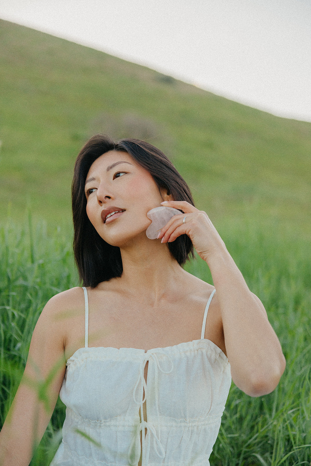 Utilize this tool whenever you're able! This ancient tool helps drain the lympatchic system and increase circulation, bringing vibrancy to the face.